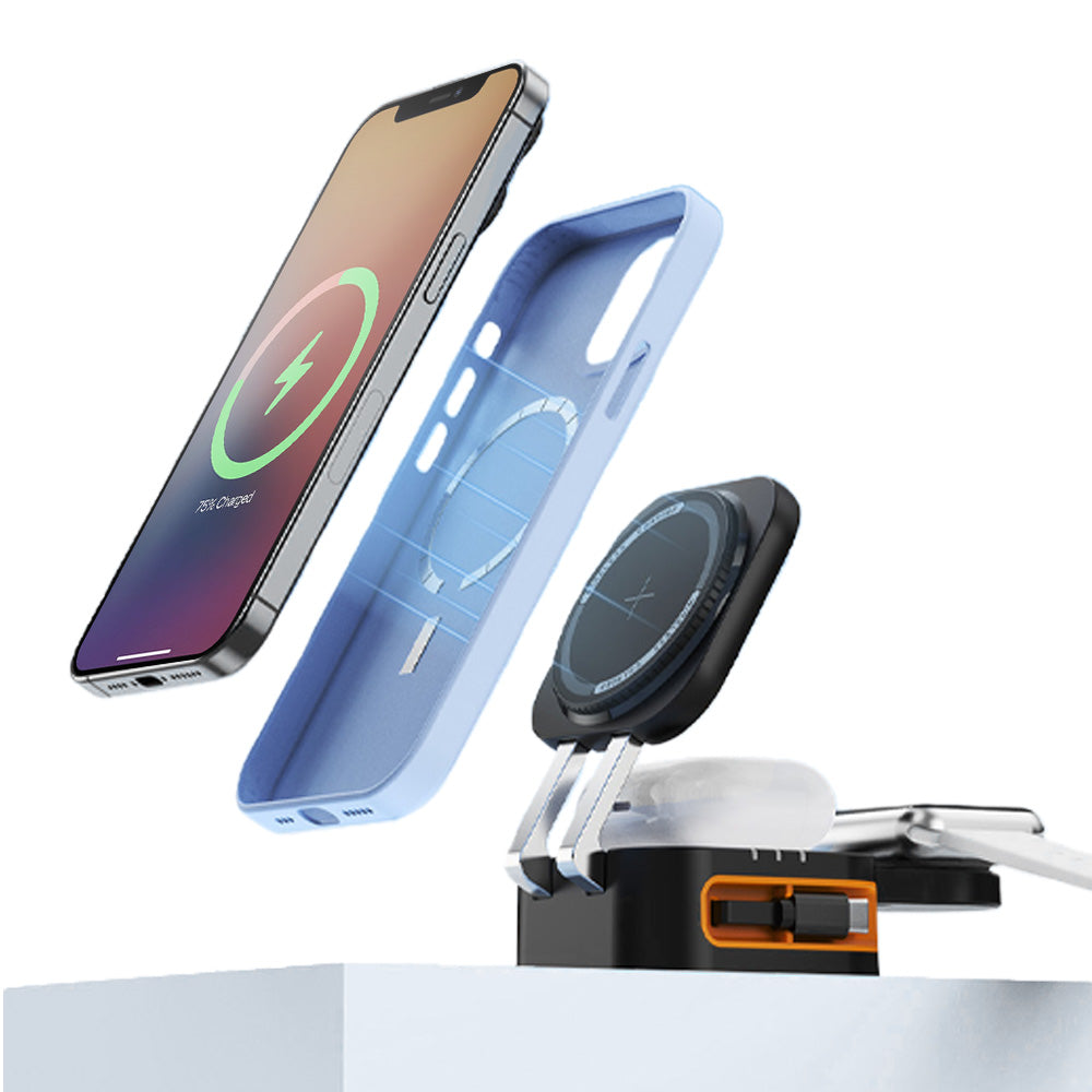 Experience the convenience of seamless charging as the TrioLink's strong magnetic attraction ensures a secure connection, even through your iPhone's MagSafe case.